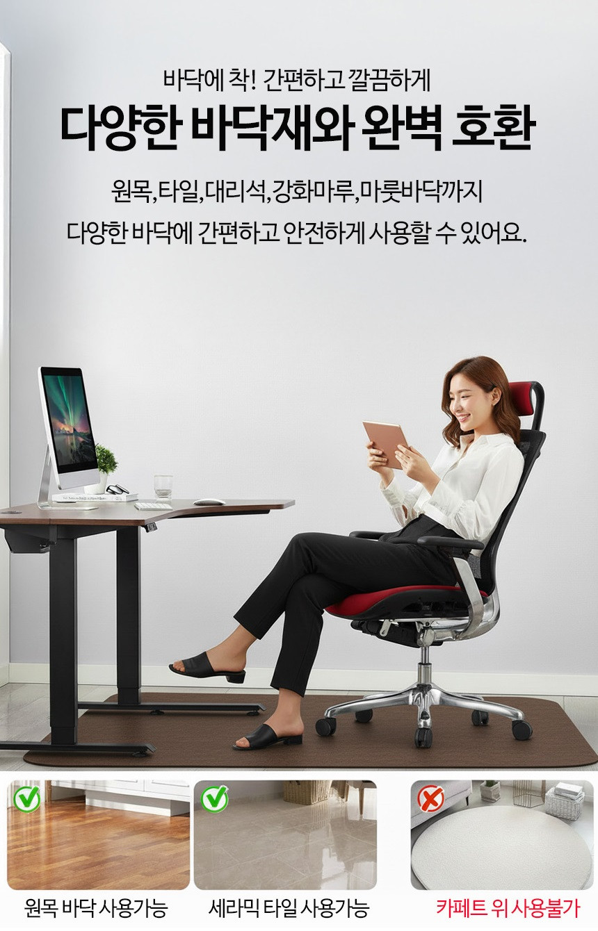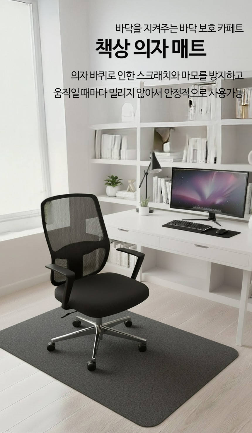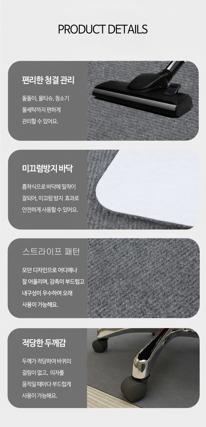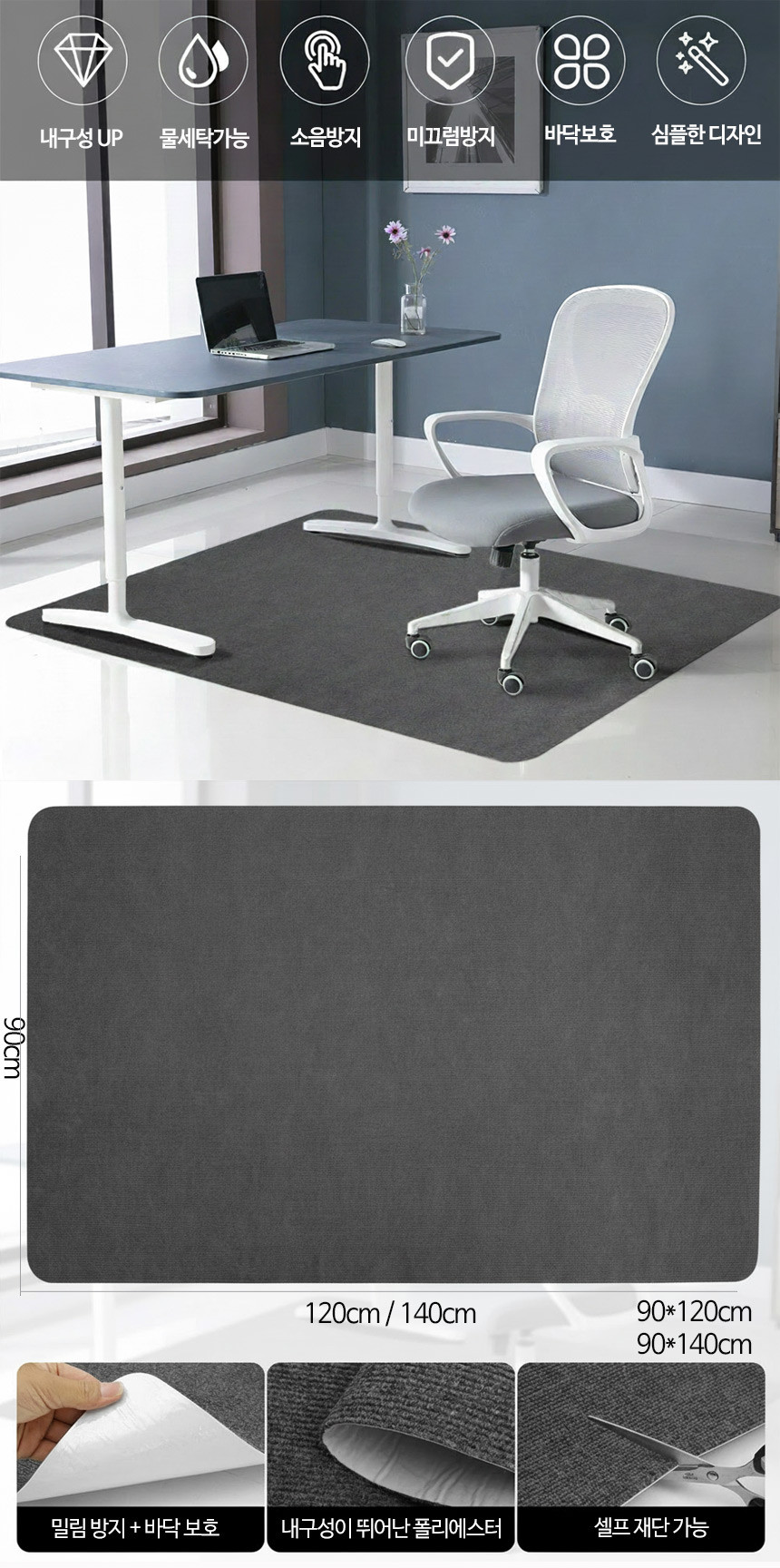 컴퓨터 의자 매트 카페트 소음 긁힘 방지 러그 바닥보호 그레이, 90x120cm