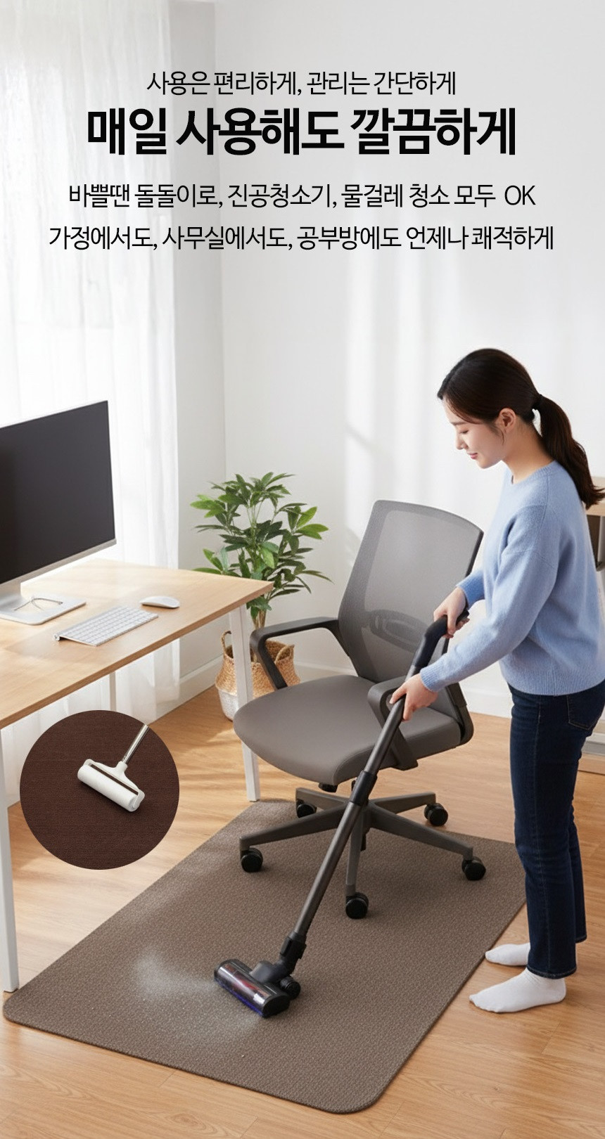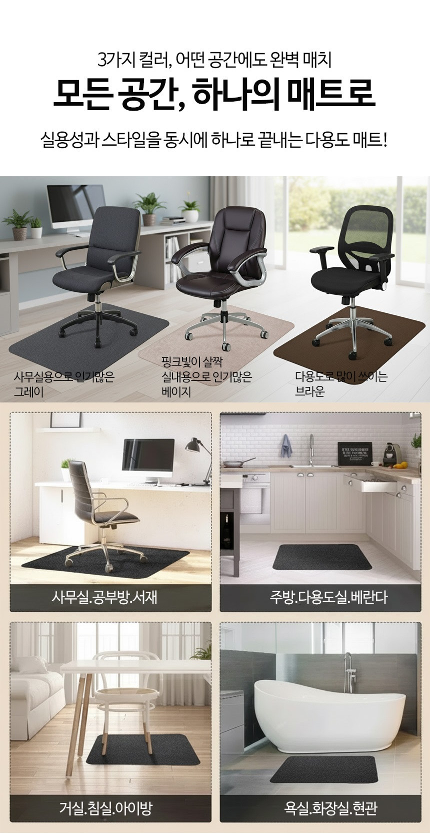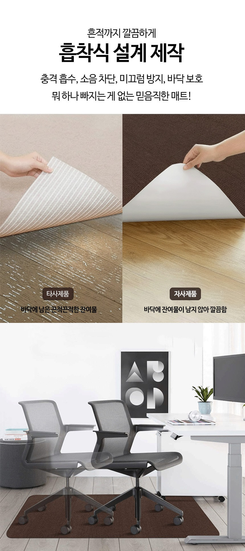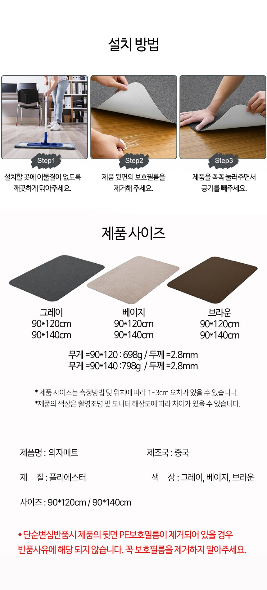 컴퓨터 의자 매트 카페트 소음 긁힘 방지 러그 바닥보호 그레이, 90x120cm